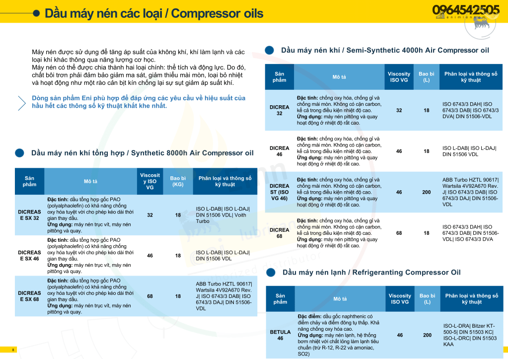 Dòng sản phẩm Eni phù hợp để đáp ứng các yêu cầu về hiệu suất của hầu hết các thông số kỹ thuật khắt khe nhất.